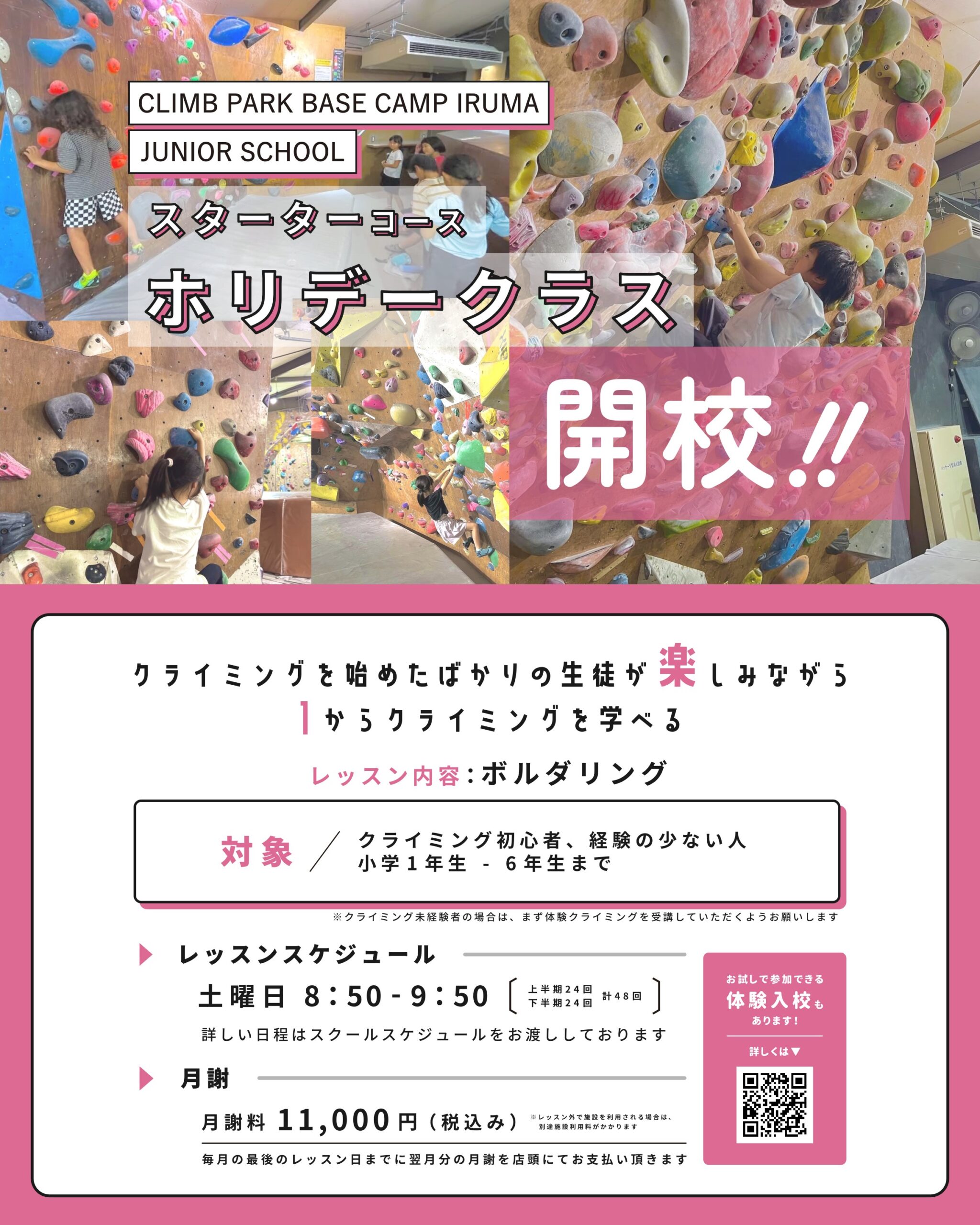 初めてクライミングをするお子さんにぴったりのホリデークラスが開講します!