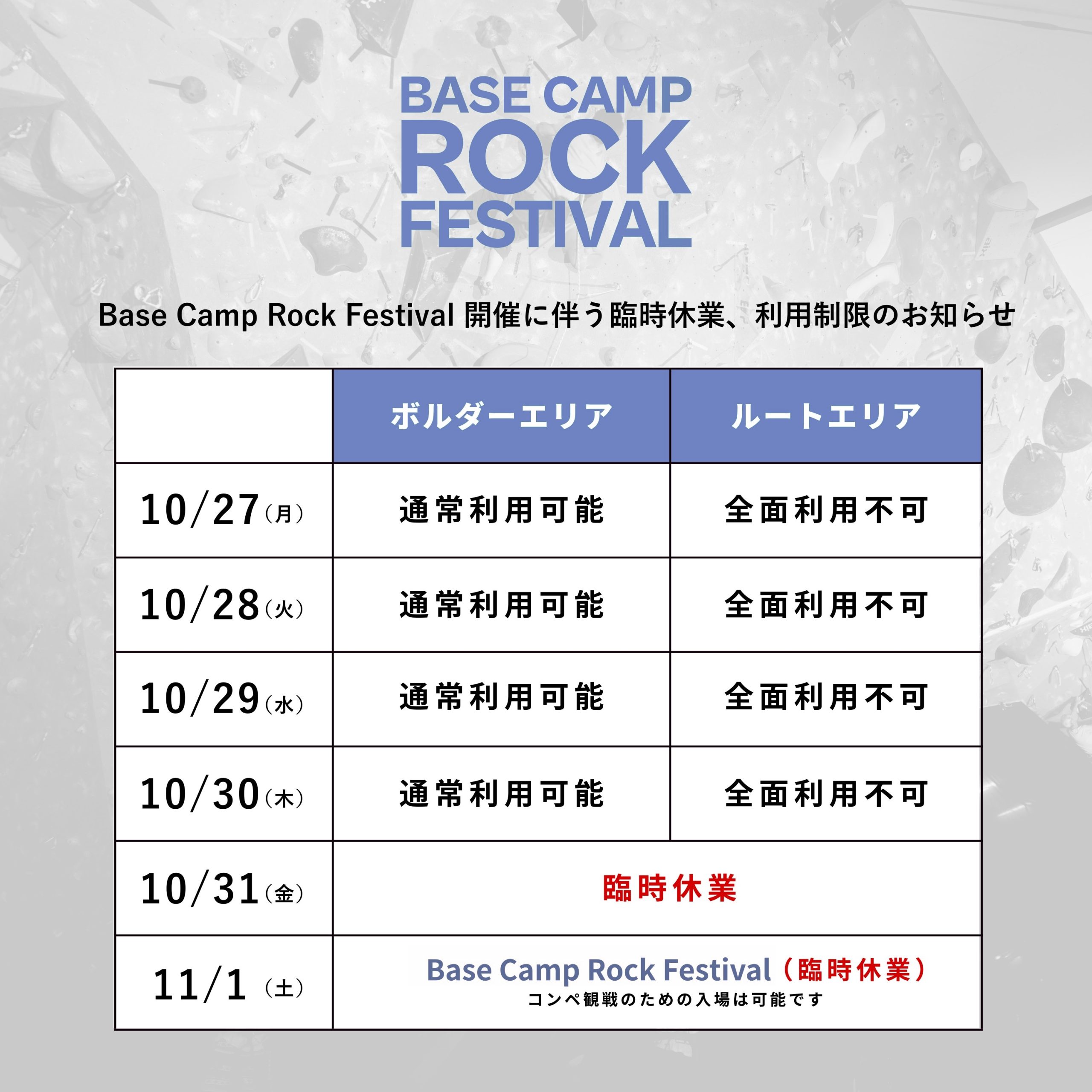 【Base Camp Rock Festival 2025 開催に伴う利用制限・臨時休業についてのお知らせ】
