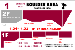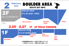 8月31日(土)1階エリア貸切営業のため、10:00~12:00までリードエリア、1Fボルダーがご利用できません。ご迷惑をおかけいたしますが何卒ご理解ご協力をお願いいたします。(2Fボルダーは通常通り10:00~ご利用可能です)