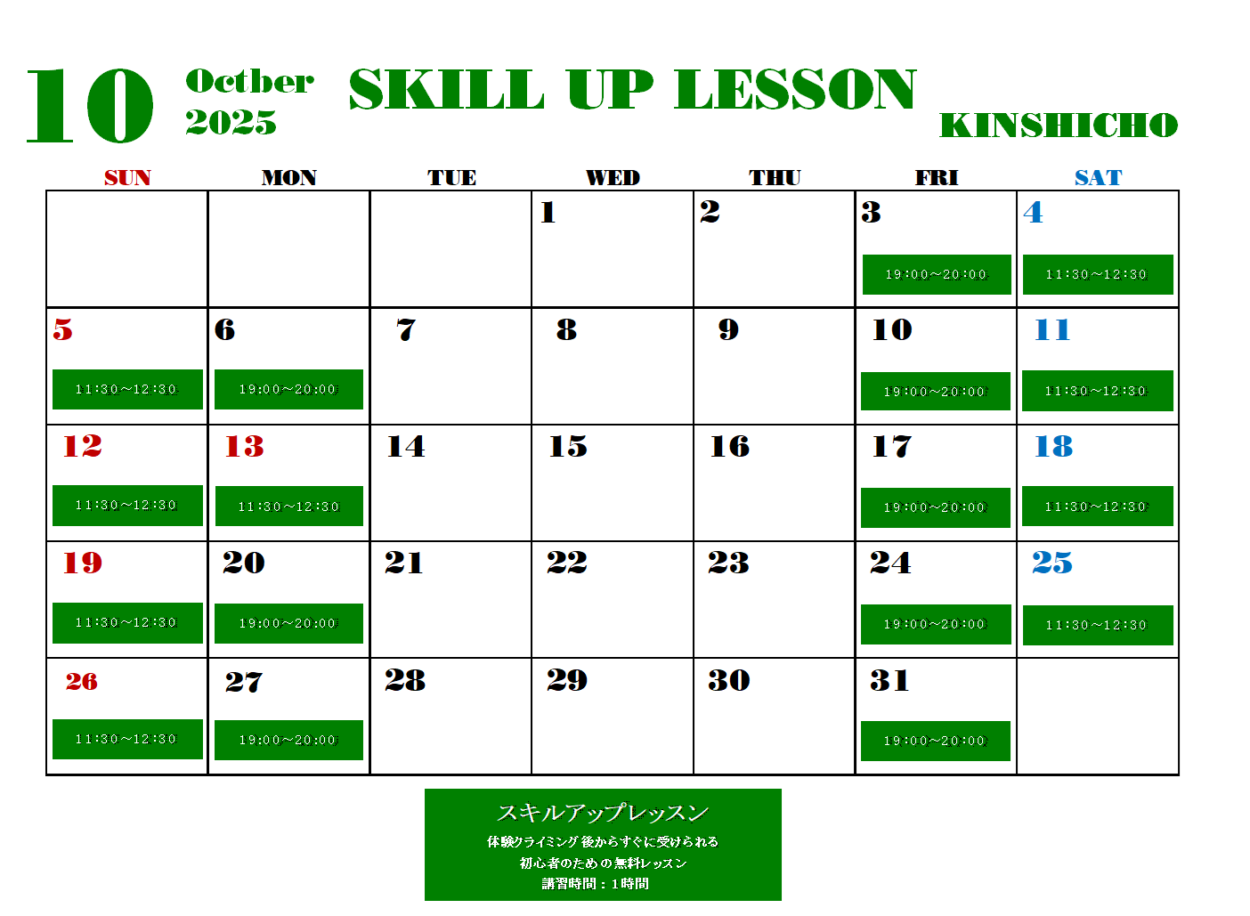 スキルアップレッスン(参加費無料※初回講習時にテキスト代¥100-を頂戴します/予約制)