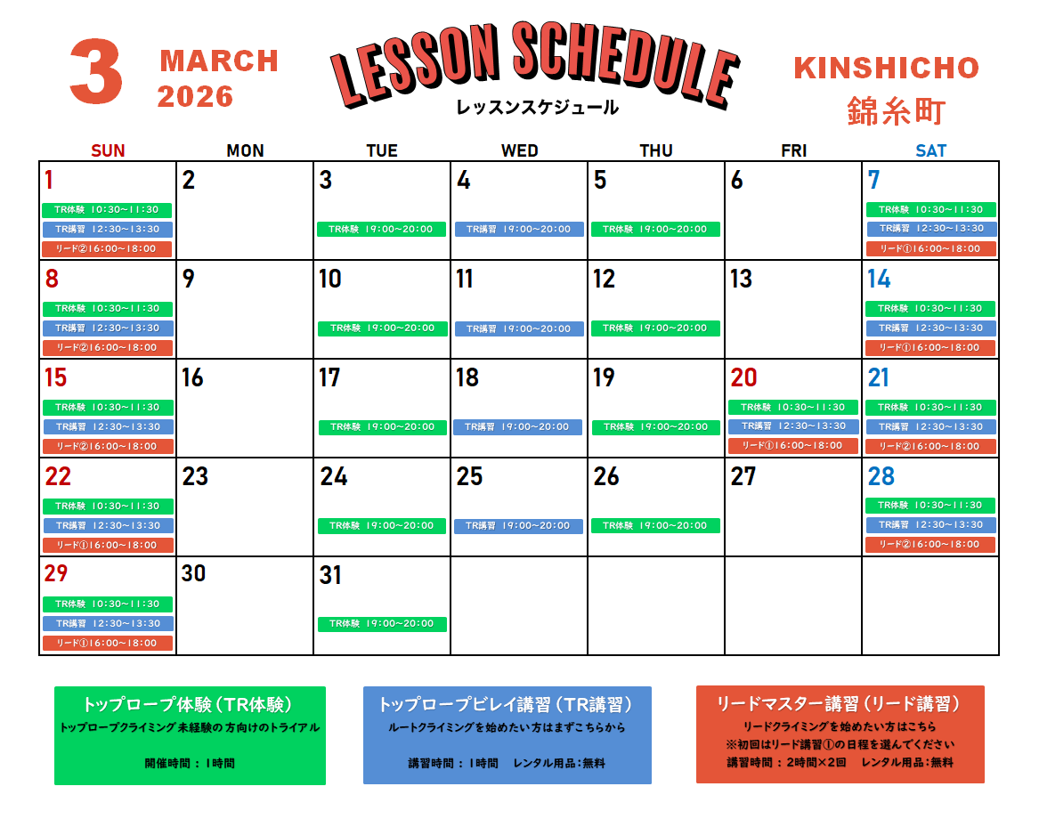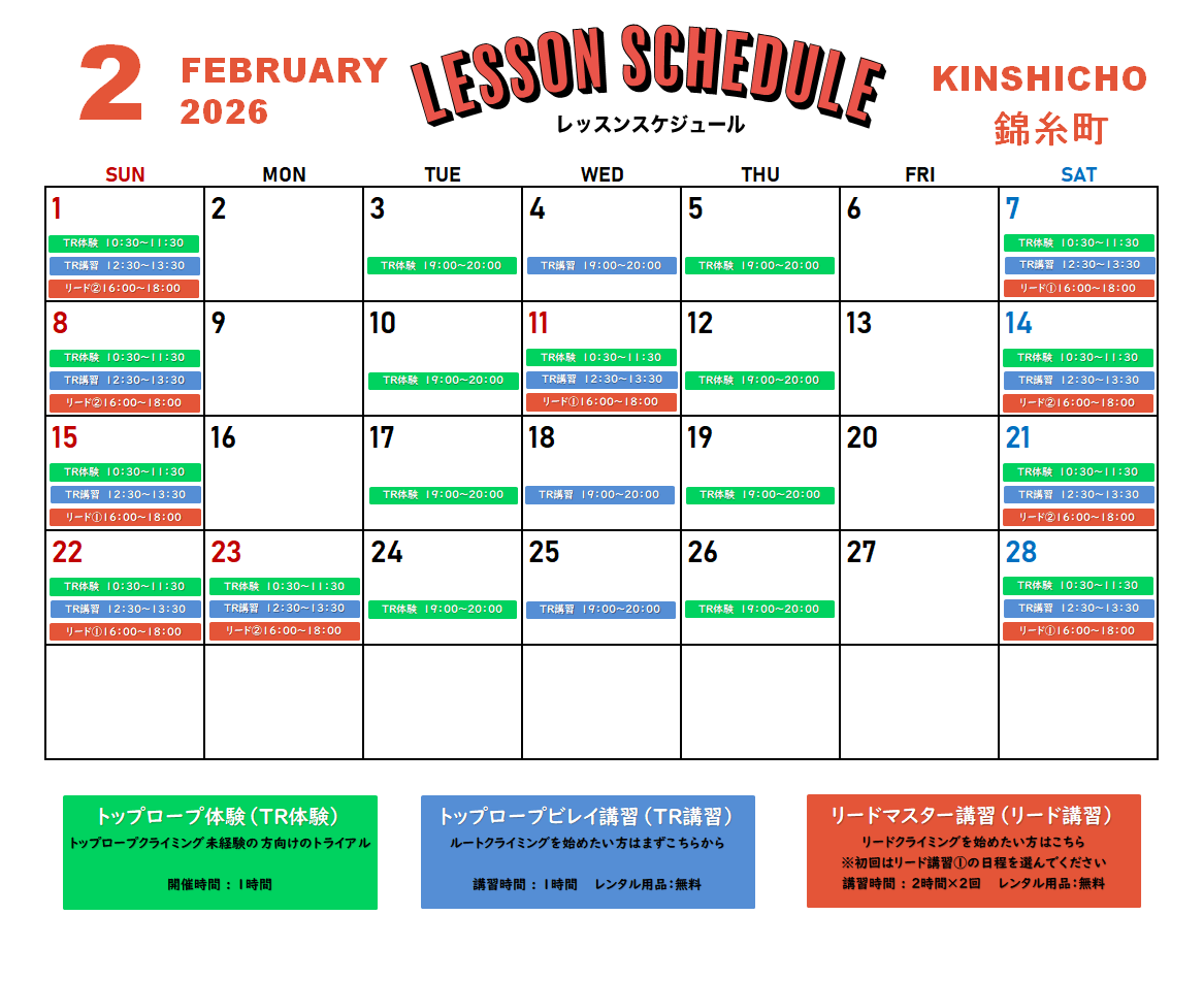対象 トップロープ経験者 (1回でも可)※ボルダリング歴により応相談 ※中学生以下は受講できません