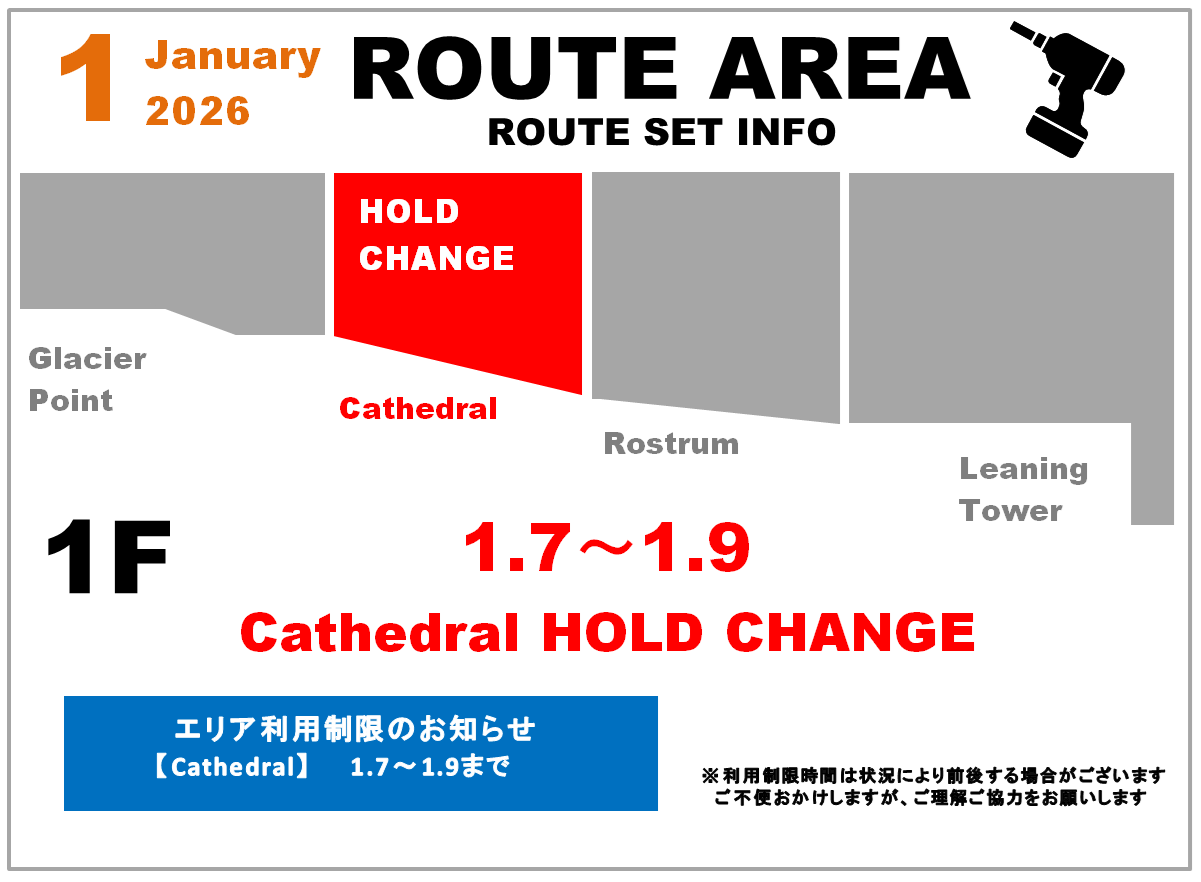 リードエリア”Cathedral”ホールド替えのお知らせ