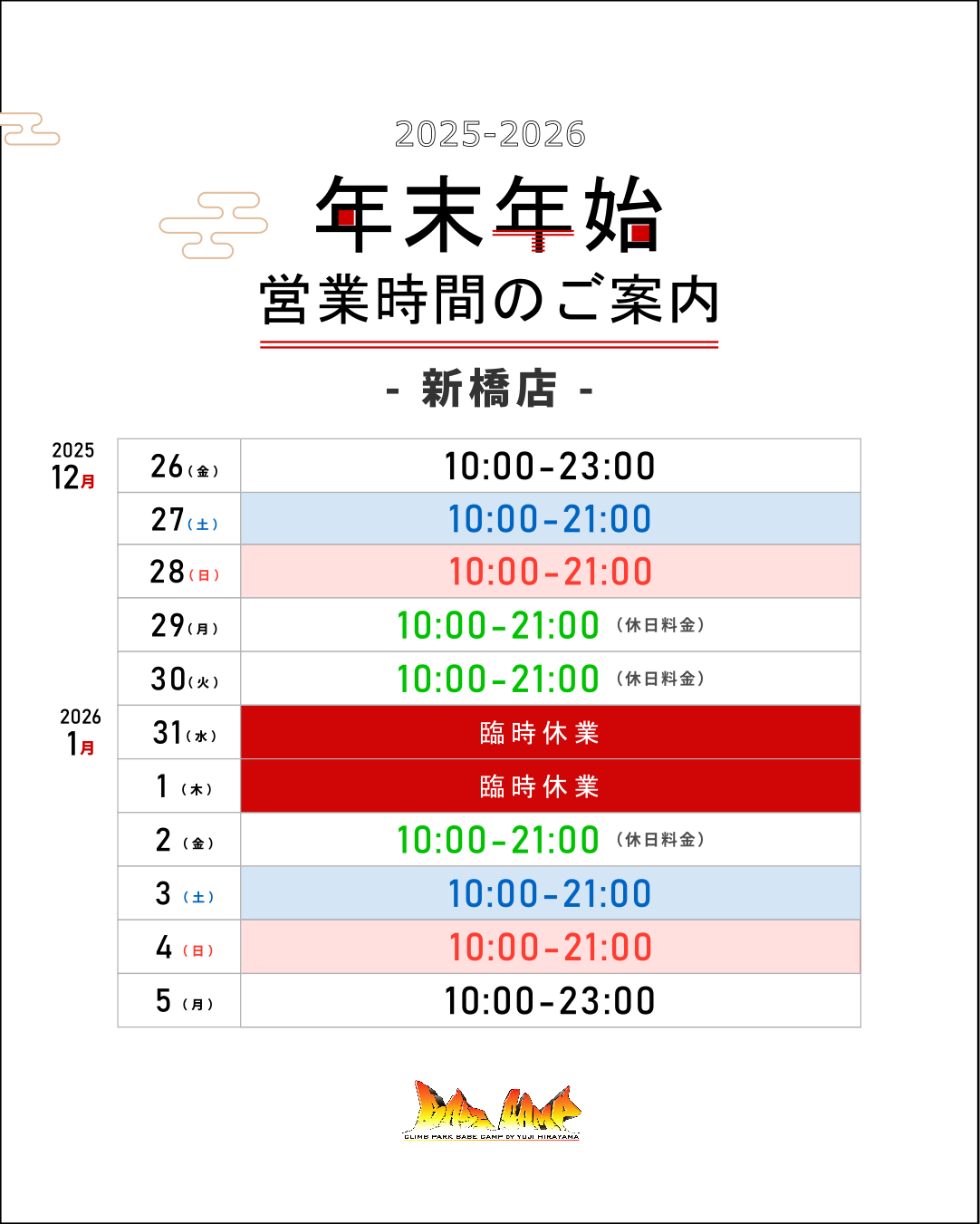 年末年始の営業案内