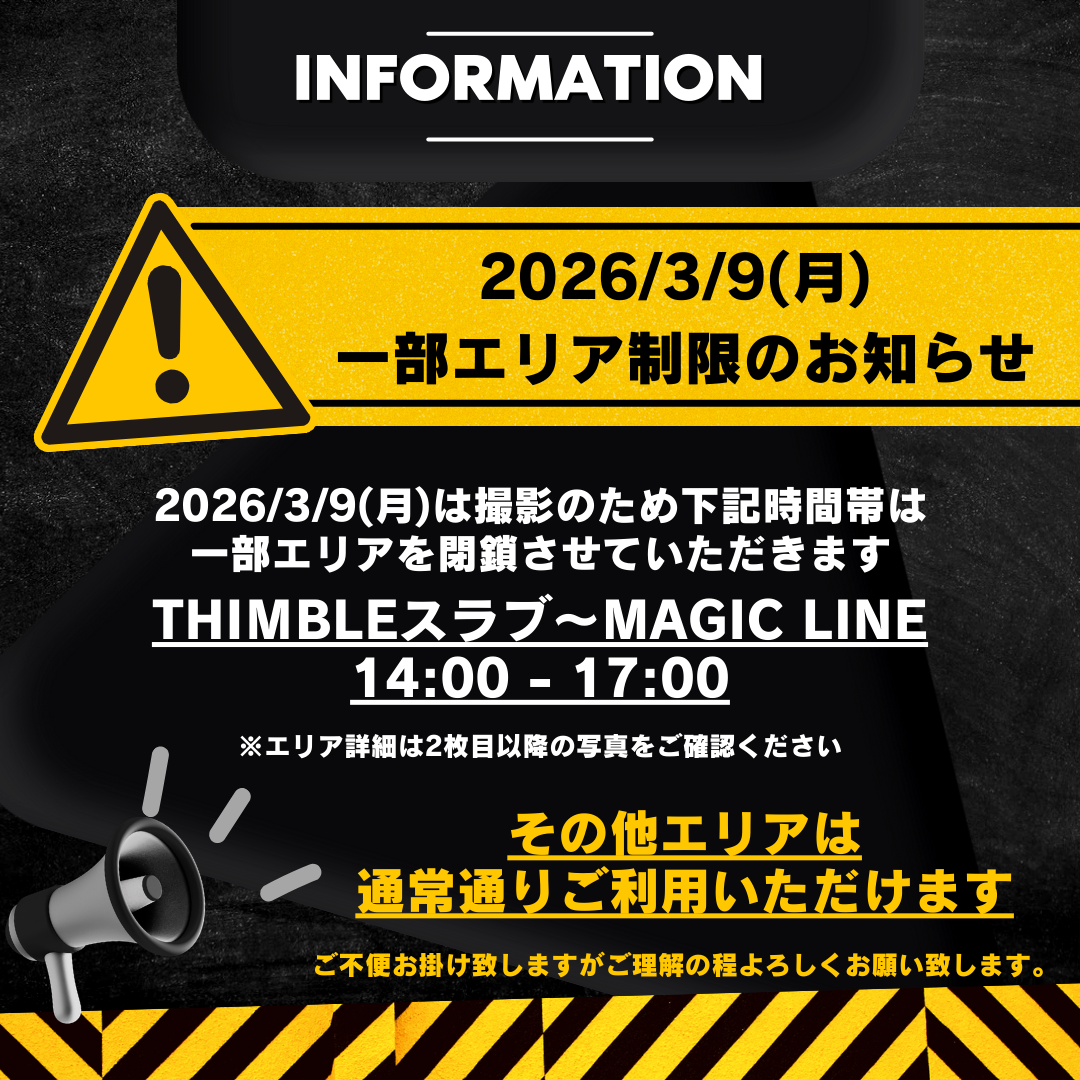 3/9(月) 14:00~17:00一部エリア利用制限のお知らせ