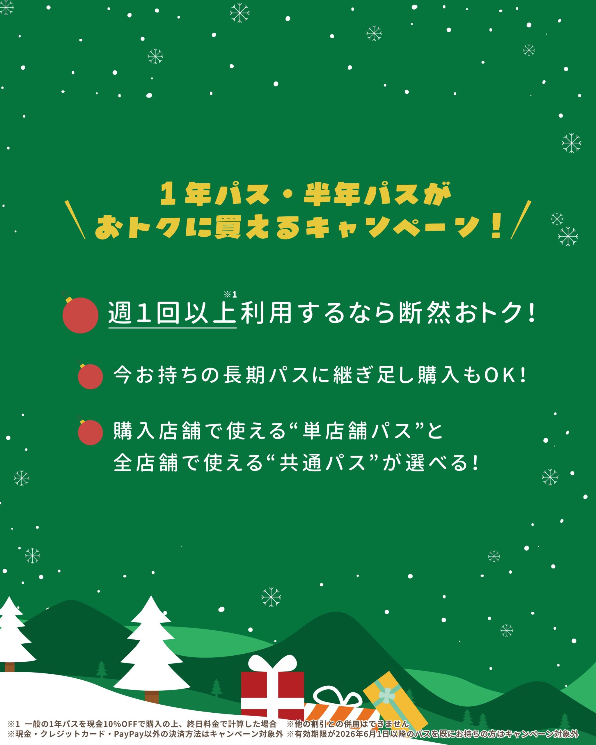 1年パス&半年パスがお得に買えるキャンペーンが始まります👍